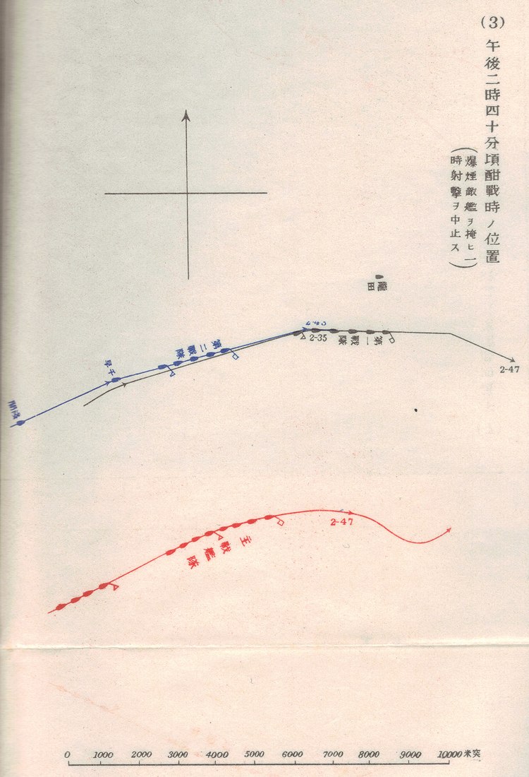 < 午後二時四十分の両艦隊の位置 (「明治三十七八年海戦史」挿図) >