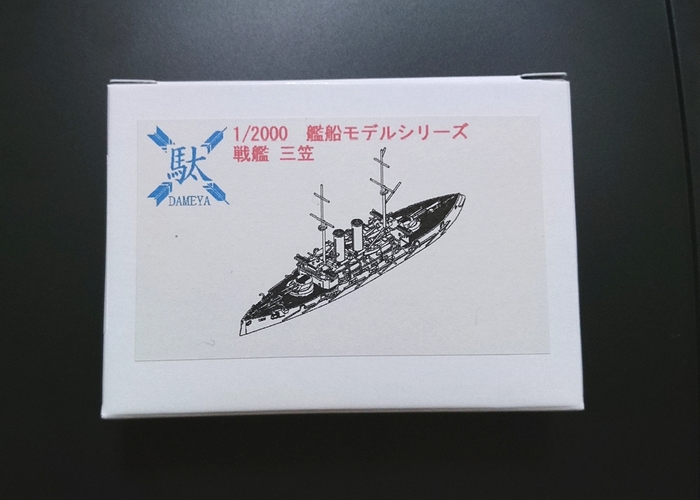1/144スケールの戦車、1/2000スケールの艦船など多数のガレージキットを販売しているDAMEYAの「1/2000 戦艦三笠」です。