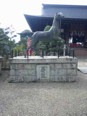 本殿前にはステッセルから贈られた愛馬「壽号」とその仔馬「璞号」の像があります。