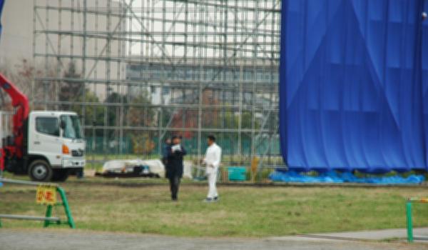 この時、ちょうど近くで見物していた、地域情報サイト「おらがまち!!」管理者の方から様々な情報をお聞きすることができました。NHKやSKIPシティ関係者の方から聞いた話によると、この撮影は夏〜秋頃に行われる予定だったようですが、同じ敷地で民放のドラマで救命ヘリの離着陸シーンを撮影していたこともあり、セットの組み立てや撮影が後ろにずれたとのことでした。また、普通は見物客の少ない平日に撮影が行われるのですが、前述したようにスケジュールがずれ込んでいることもあり、今回のような休日の撮影を見ることが出来るのは珍しいとの事でした。