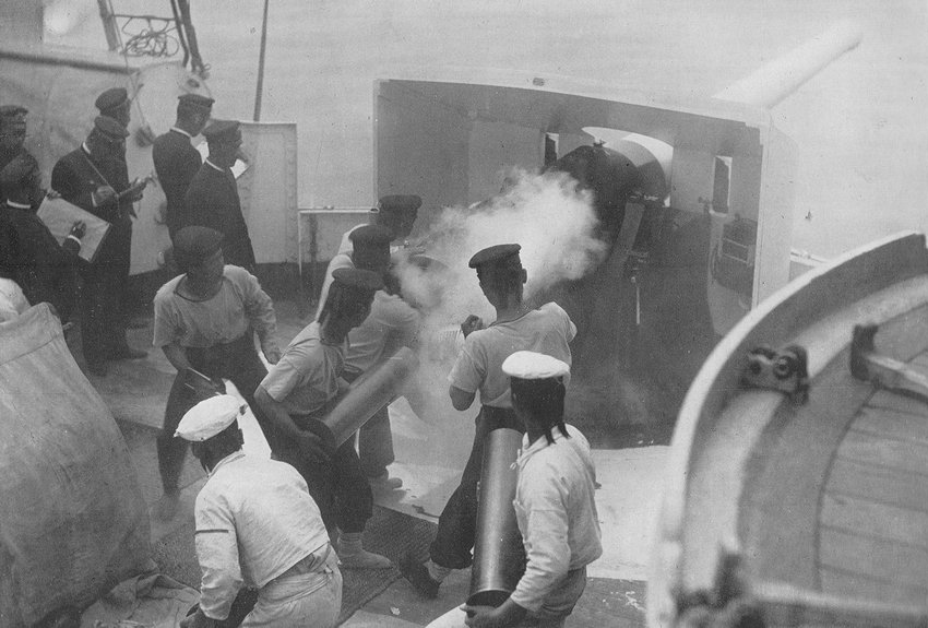 戦艦富士の主砲発射(1) 戦艦富士の主砲発射(2) 速射砲の発射