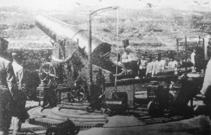 「その初め少佐由比光衛開戦前大いに二十八珊砲使用を主張したが、突飛なりとて一笑に附せられた」