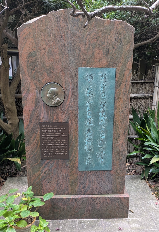 日蓮が「立正安国論」を著述した場所と言われている安国論寺。その境内に2011年12月に建てられた歌碑です。子規は明治21年と明治26年に鎌倉を訪れ、その際に安国論寺も訪れていたとのことです。