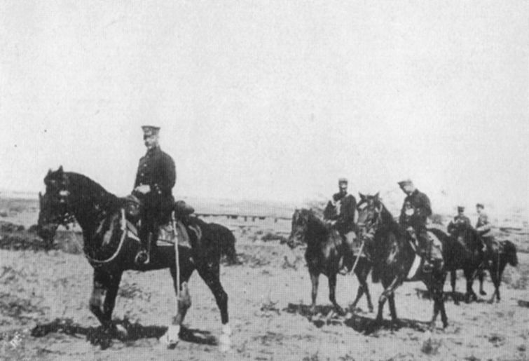 秋山支隊の司令部。中列左から三人目が好古、その右が田村久井と豊辺新作。